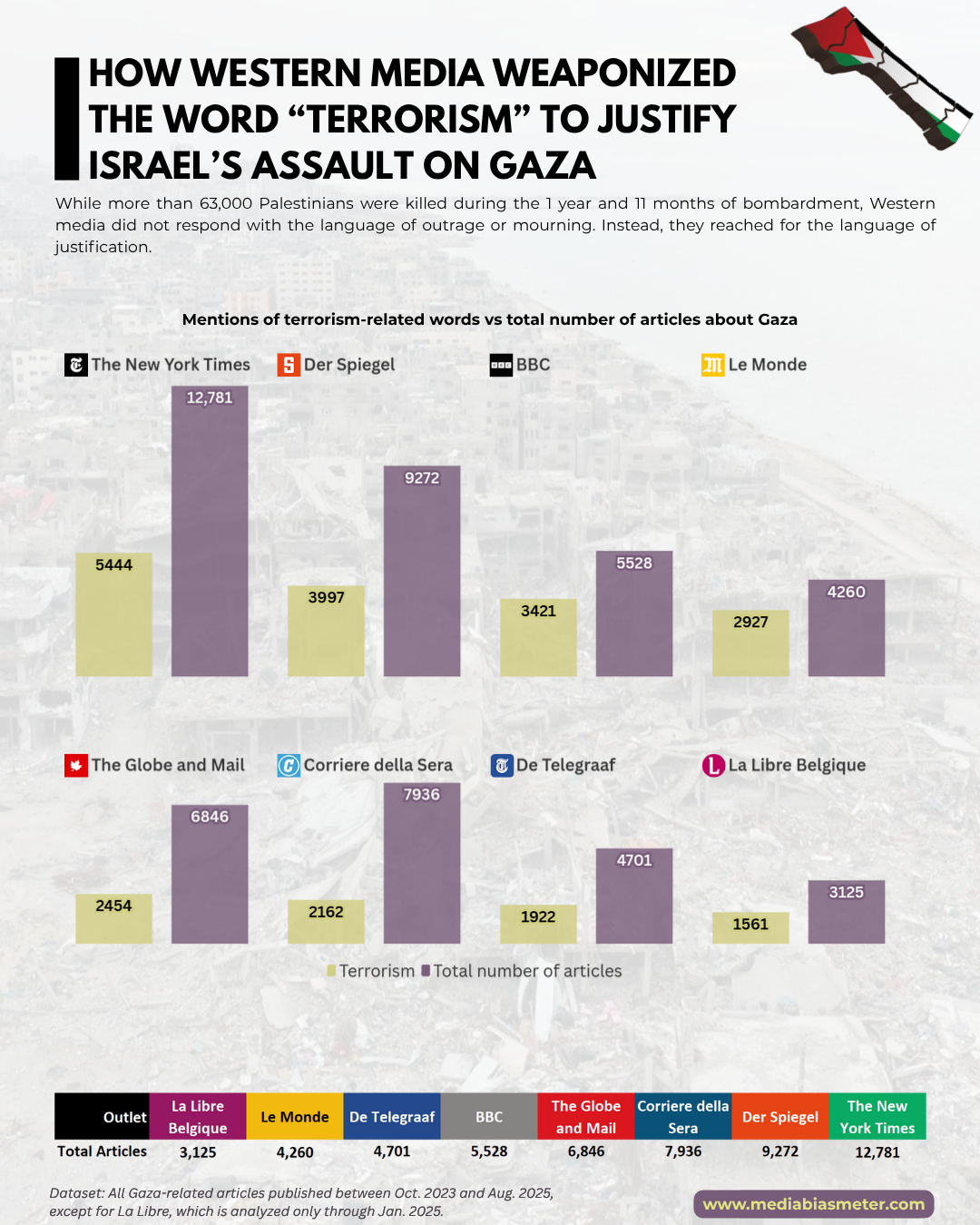 Ritstjórnir sumra vestrænna fjölmiðla (m.a. New York Times) gáfu út lista yfir hugtök sem blaðamenn fjölmiðlanna voru beðnir um að forðast í fréttaumfjöllun um Palestínu og Gaza, sjá eftirfarandi lista: