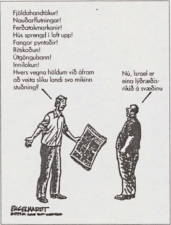Lítt hefur þokast í réttindabaráttu Palestínumanna á því röska ári sem liðið er síðan eftirfarandi pistill var fluttur. Friðarferlið svokallaða tók stefnu inn í óvissuna þegar Líkúdbandalagið hófst til valda vorið 1996 í Ísrael og verður bilið milli Palestínumanna og Ísraelsmanna æ breiðara. Vonir um að ísraelskt réttarfar mildaðist samfara aukinni sjálfsstjórn Palestínumanna eru að engu orðnar. Samtímis bendir fátt til þess að oddvitar palestínsku heimastjórnarinnar verði við áskorunum mannréttindasamtaka um að virða grundvallarreglur og sjónarmið varðandi meðferð á pólitískum andstæðingum sínum. Því er frásögnin sem fer hér á eftir gott dæmi um ástandið sem ríkir enn þó svo að hún vísi til atburða sem áttu sér stað fyrir rúmu ári.